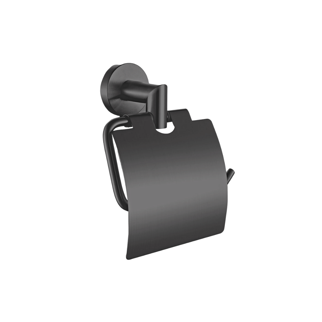 Products Name : Single Paper Holder With Cover (Black) Material : Stainless Steel 304 Functions : To put toilet paper roll Installation Type : Wall Mounted Application Place : Washroom, Bathroom and Etc