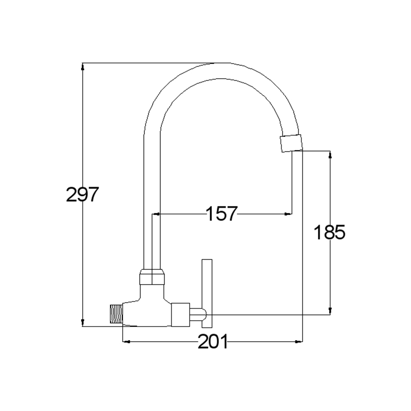 Products Name : Wall Kitchen Sink Tap – Quarter Turn Series Name : F9 Series Model : 51000F9HS Functions : Cold Finishing : Polished Chromed Material : Brass Aerator Type : Bubble Cartridge Type : Brass Cartridge Installation Type : Wall Mounted Application Place : Kitchen Sink, Outdoor Sink Water Saving Function : Available / Optional Water Connector Thread : ½ inch Minimum Water Pressure (Bar) : 1 Maximum Water Pressure (Bar) : 7