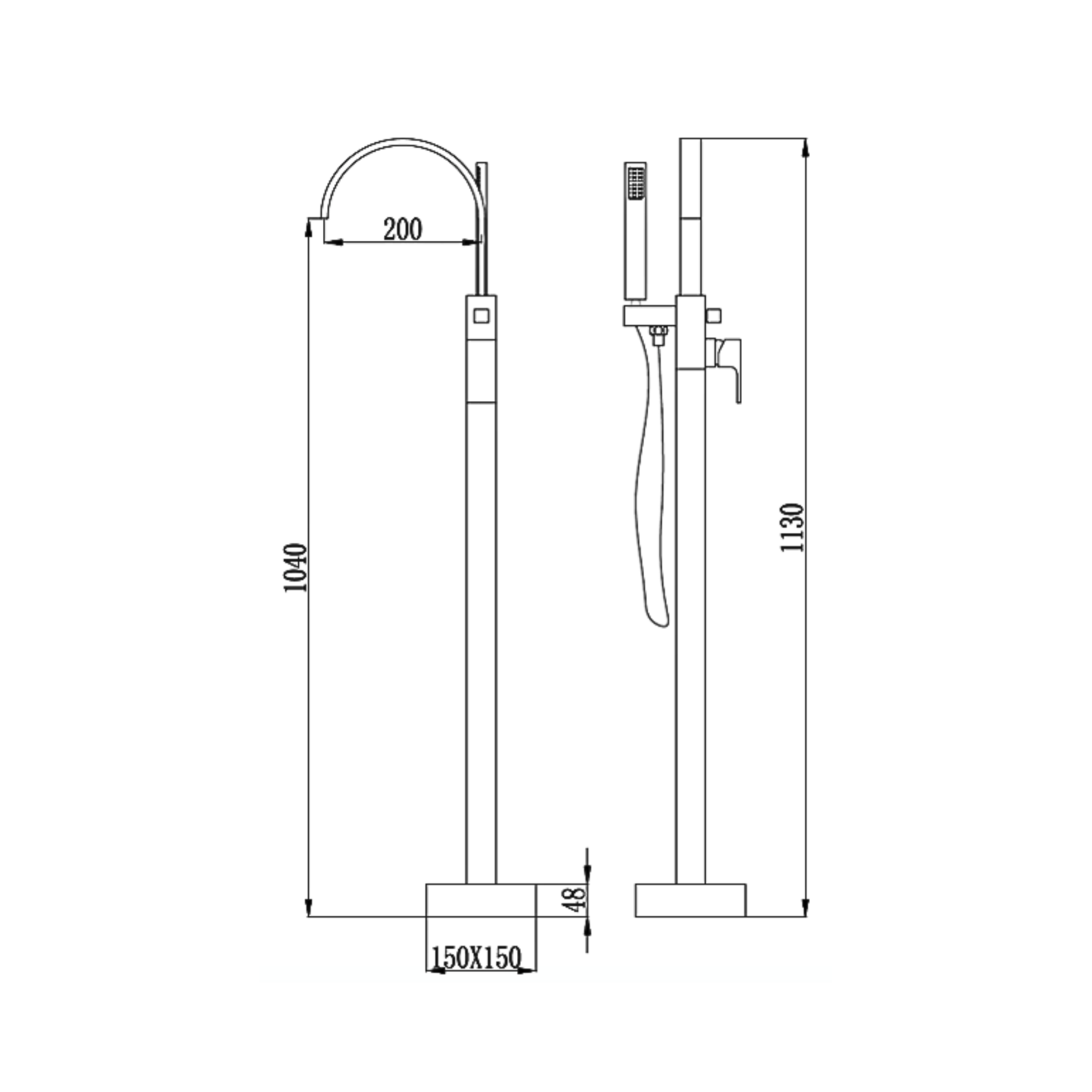 Product Name : Floor Standing Bath Tub Filler c/w 1.5m Flexi-Hose,
