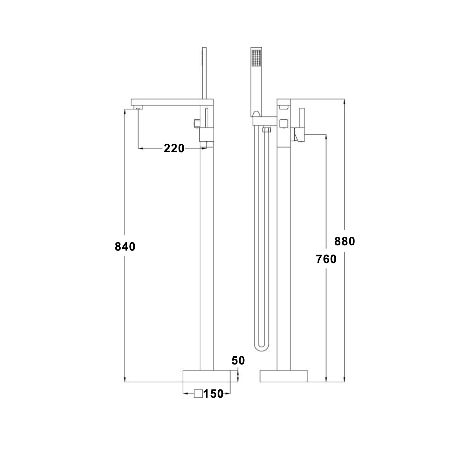Products Name : Floor Standing Bathtub Filler c/w 1.5m Flexi Hose, Spout and Hand Shower