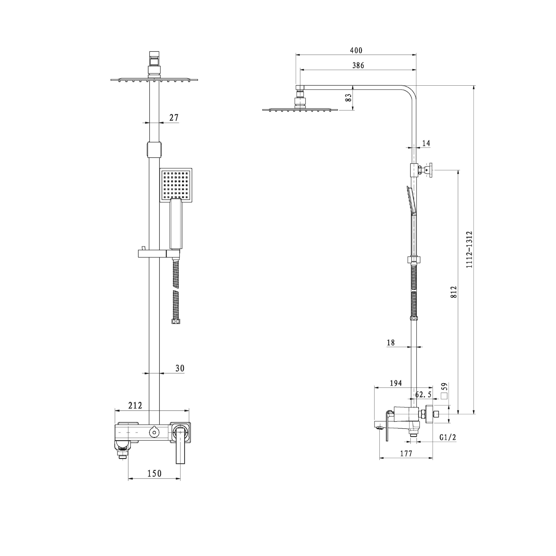 Functions : Rain Shower (single), Hand Shower (single), Spout (single)