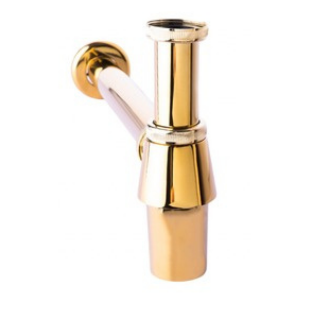 Products Name : Bottle Trap (Gold) Material : Brass (Nut), Stainless Steel (Pipe) Functions : To allow water drain through the outlet pipe Dimension : Length 380mm, Height 150mm-200mm Installation Type : Basin Waste Application Place : Bathroom Basin, Kitchen Basin Connector Diameter : 1 ¼″ (ø32mm)